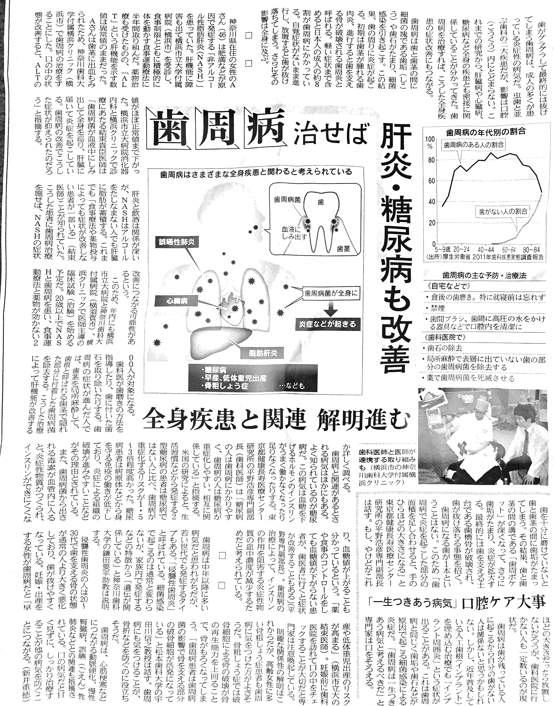 11月15日の日経新聞に載っていた歯周病と全身疾患の関係の記事を載せておきます。
