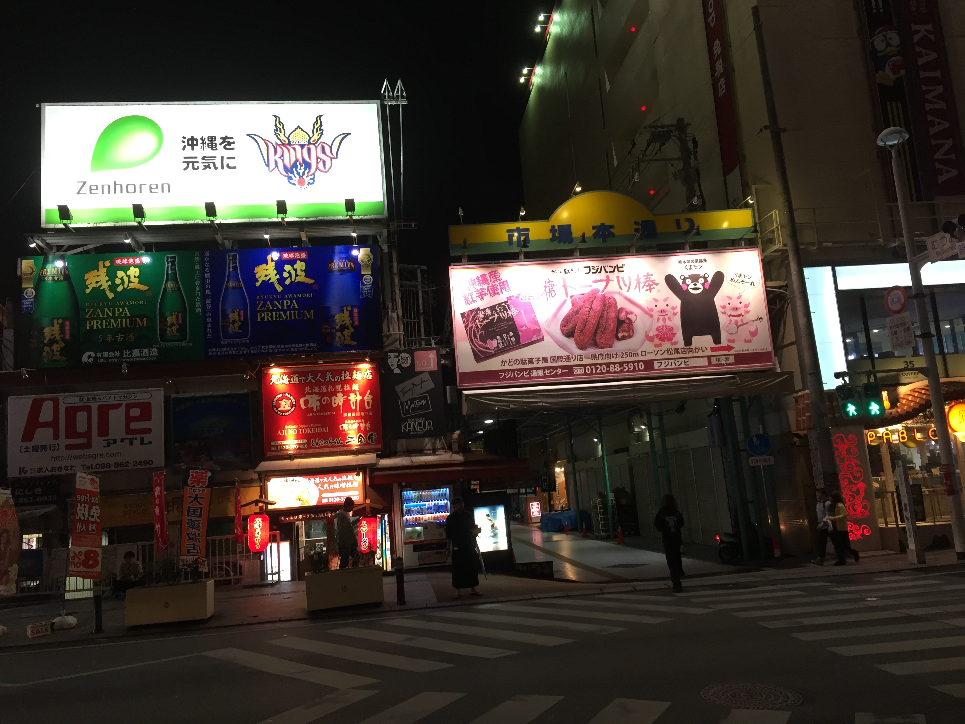 昨晩は羽田から夜の便で那覇に移動です。ホテルに到着したのが23:30でしたがぶらりと国際通りを歩いてみました。