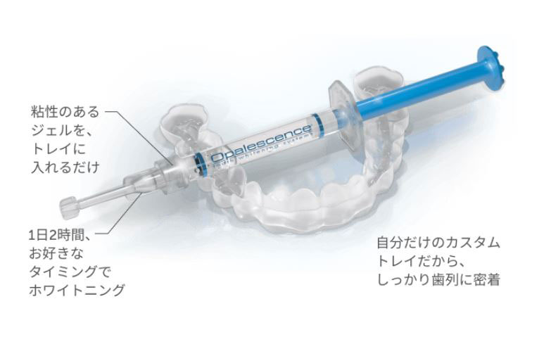 ご自身の歯型にあったトレイにホワイトニング剤を入れて行います。